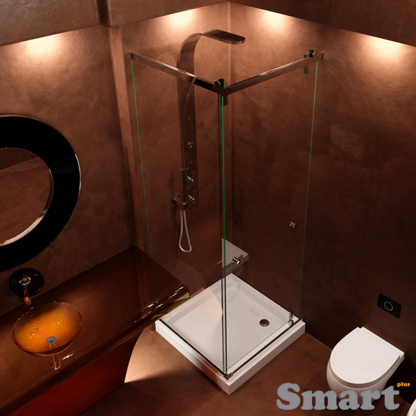 Τα μεταλλικά μέρη της καμπίνας μπάνιου είναι κατασκευασμένα από ανοξείδωτο χάλυβα για μεγαλύτερη αντοχή στον χρόνο, τα άλατα και την υγρασία. Η καμπίνα μπάνιου είναι σχεδιασμένη να λειτουργεί βέλτιστα με κρύσταλλα ασφαλείας πάχους 10mm. Τα ράουλα είναι βαρέου τύπου εξυπηρετώντας την ομαλή και αθόρυβη κίνηση της πόρτας του συστήματος. Η καμπίνα μπάνιου Smart Plus κατασκευάζεται σε ειδικές διαστάσεις κατόπιν παραγγελίας.
