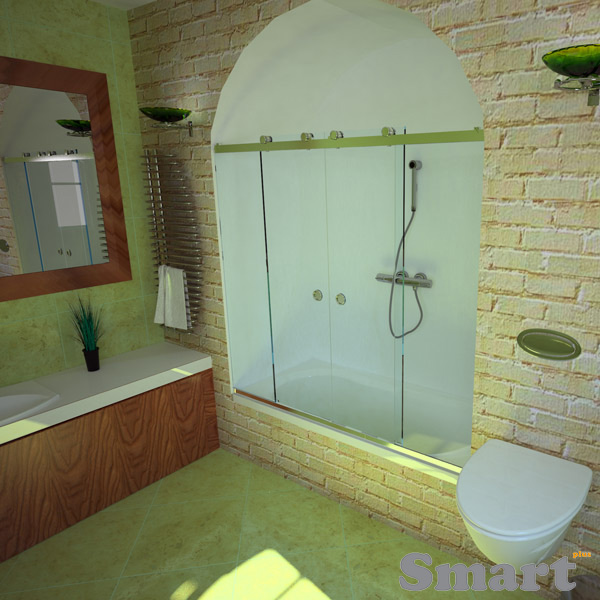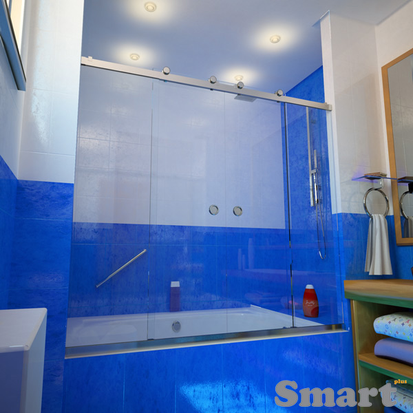 Τα συρόμενα φύλλα ασφαλίζουν μεταξύ τους με την χρήση ειδικών μαγνητικών προφίλ. Τα μεταλλικά μέρη της καμπίνας μπάνιου είναι κατασκευασμένα από ανοξείδωτο χάλυβα για μεγαλύτερη αντοχή στον χρόνο, τα άλατα και την υγρασία. Η καμπίνα μπάνιου είναι σχεδιασμένη να λειτουργεί βέλτιστα με κρύσταλλα ασφαλείας πάχους 10mm. Τα ράουλα είναι βαρέου τύπου εξυπηρετώντας την ομαλή και αθόρυβη κίνηση της πόρτας του συστήματος. Η καμπίνα μπάνιου Smart Plus κατασκευάζεται σε ειδικές διαστάσεις κατόπιν παραγγελίας.