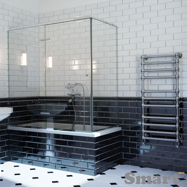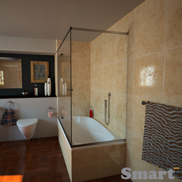 Η μονόφυλλη γωνιακή καμπίνα μπάνιου είναι κατάλληλη για κάλυψη μπανιέρας η οποία έχει δομικό στοιχείο μόνο στην μια κάθετη πλευρά της. Η ντουζιέρα αυτή διαθέτει μια ανοιγόμενη πόρτα και δύο σταθερά κρύσταλλα ασφαλείας 10mm. Στα σταθερά κρύσταλλα εφαρμόζονται ειδικά διάφανα προφίλ τα οποία εξασφαλίζουν την άψογη στεγανοποίηση του συστήματος.