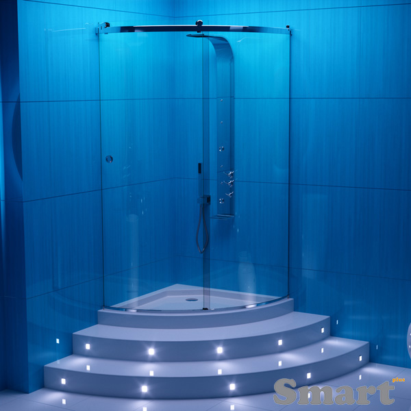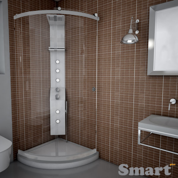 Τα κρύσταλλα που χρησιμοποιούνται είναι securit 8mm. Τα ειδικά διαμορφωμένα στοπ, επιτρέπουν στο συρόμενο φύλλο να σταματάει ακριβώς στο επιθυμητό σημείο κατά το άνοιγμα και το κλείσιμο του. Η καμπίνα μπάνιου Smart Plus είναι κατασκευασμένη από ανοξείδωτο χάλυβα για μεγαλύτερη αντοχή στον χρόνο, τα άλατα και την υγρασία. Η κουρμπαριστή καμπίνα μπάνιου είναι σχεδιασμένη να λειτουργεί βέλτιστα με κρύσταλλα ασφαλείας πάχους 8mm. Τα ράουλα είναι βαρέου τύπου εξυπηρετώντας την ομαλή και αθόρυβη κίνηση της πόρτας του συστήματος. Η καμπίνα μπάνιου Smart Plus κατασκευάζεται σε ειδικές διαστάσεις κατόπιν παραγγελίας.