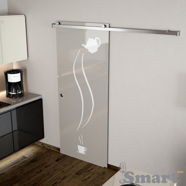 The next product line is the production of sliding glass doors, for internal spaces. These doors could be either sliding or swing. The sliding ones contain satin stainless steel accessories AISI 304. The sliding doors could be either single door or double door ones. The system contains double stainless steel rails and double rollers with ball bearings. The sliding doors are installed at doom entrances, diving living rooms from kitchens or at hotels diving various spaces. The operation of the sliding door is smooth and quiet. The glass used is tempered 10mm thick. The glass beside of transparent, it could be satin, coloured or even digital printed.